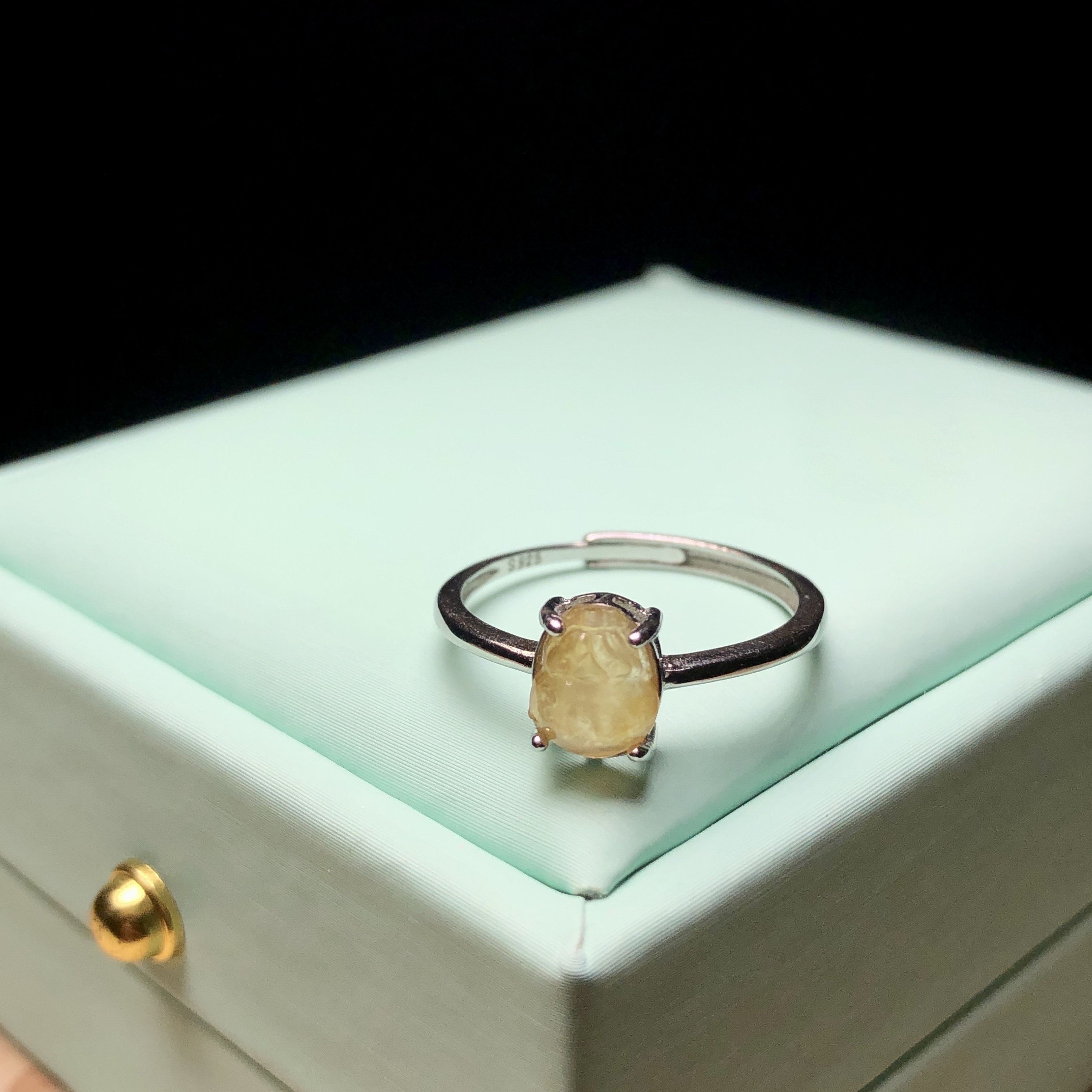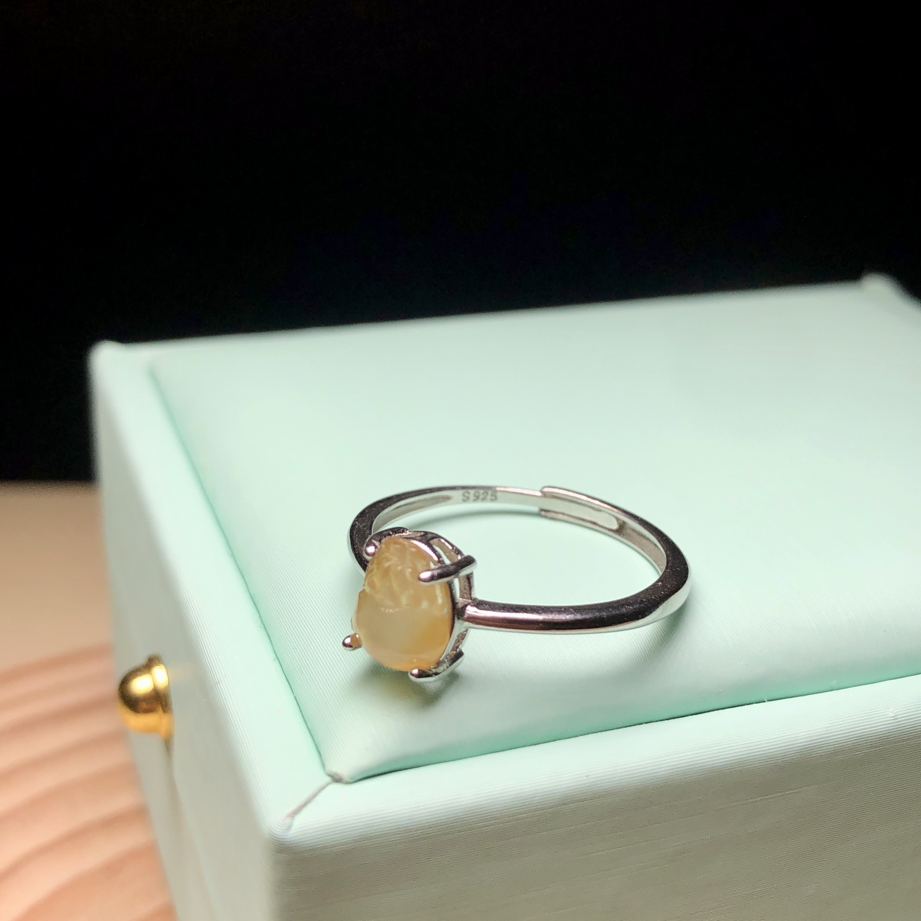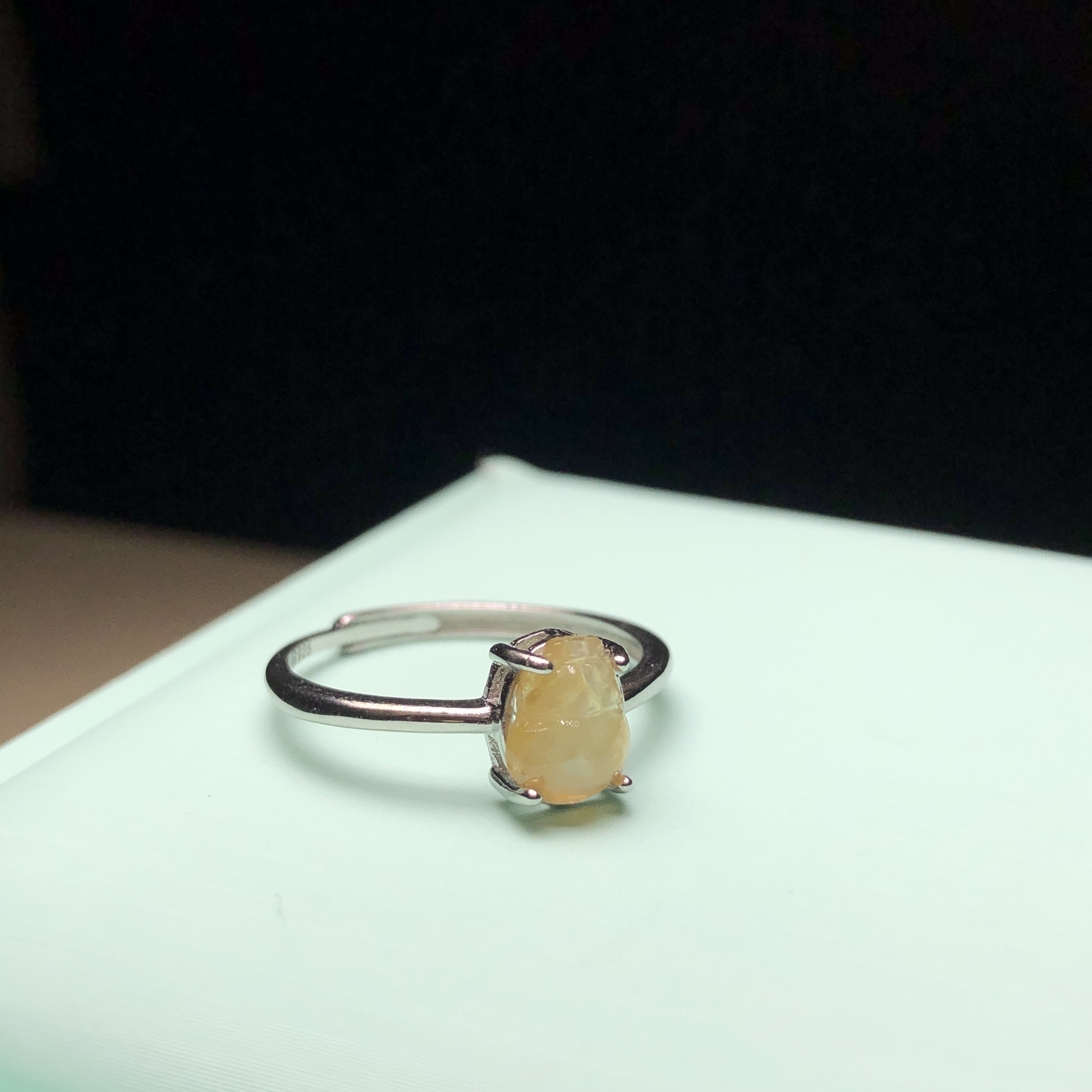 冰種黃翡銀鑲戒指 MD00049