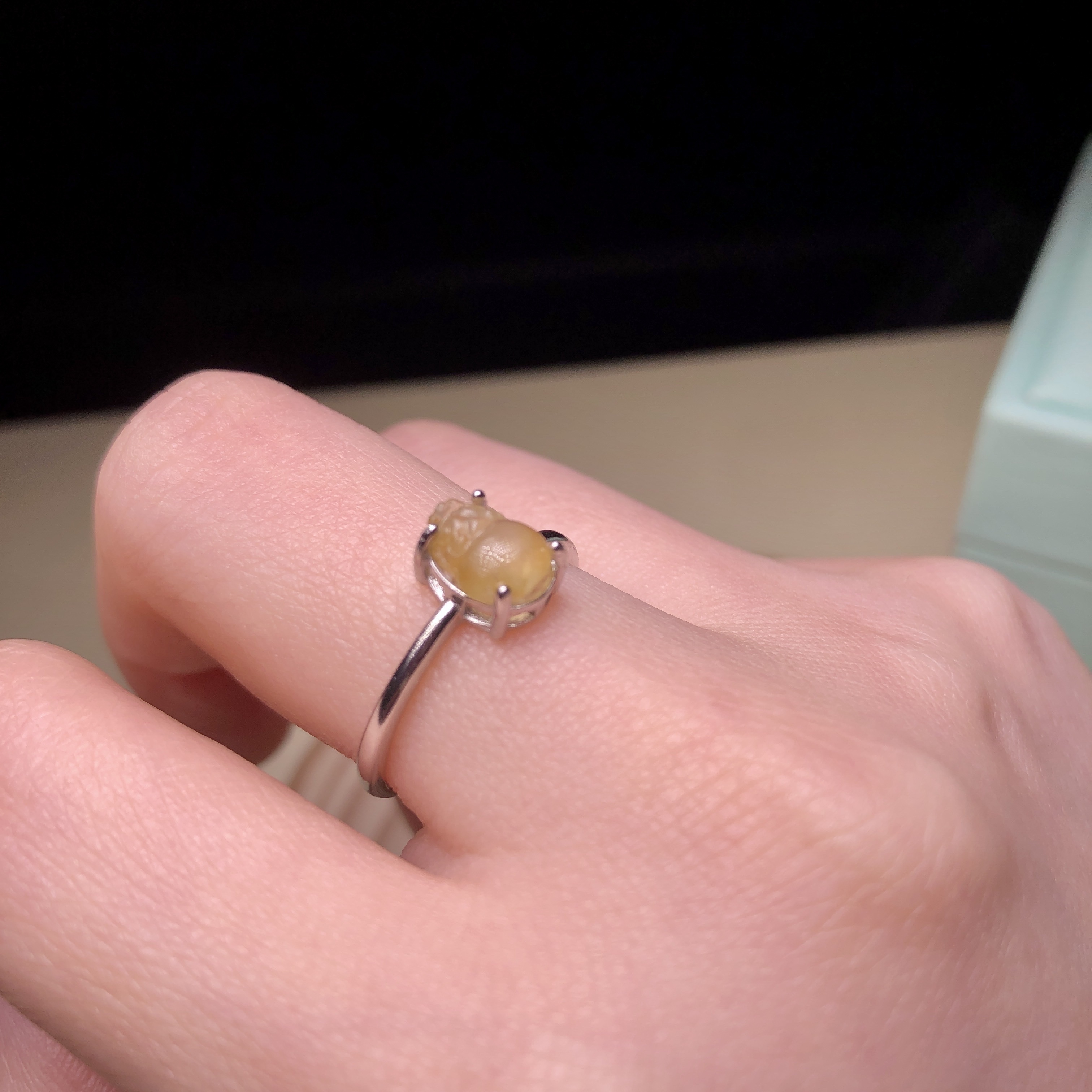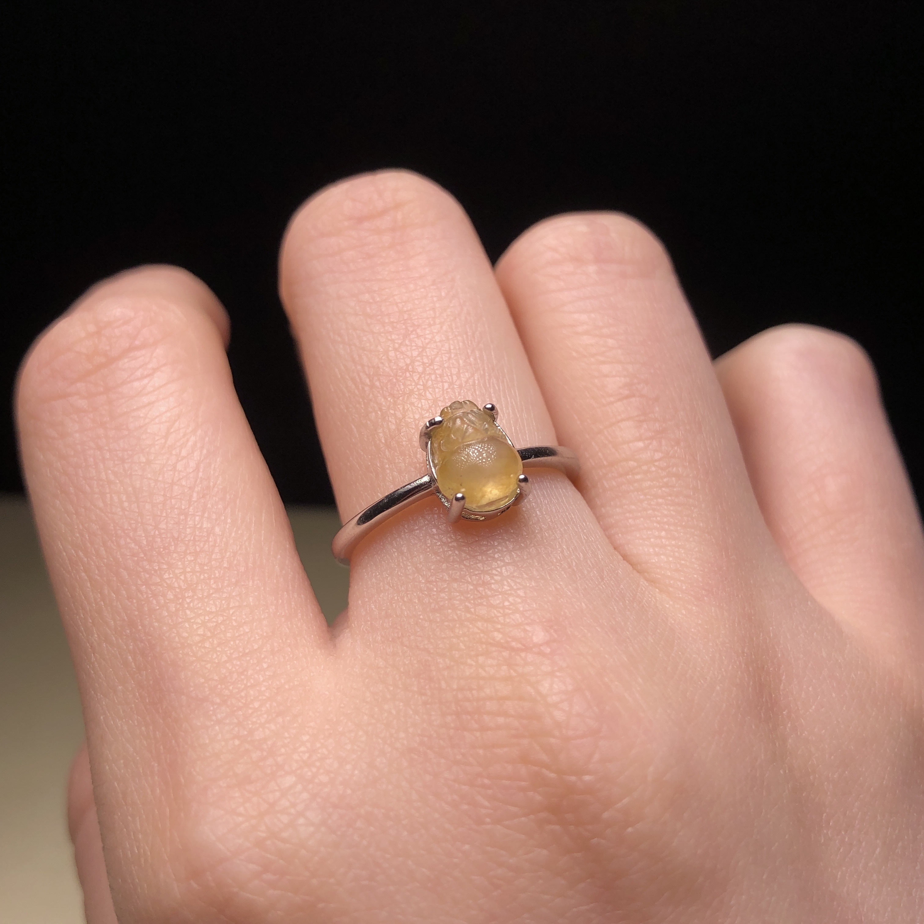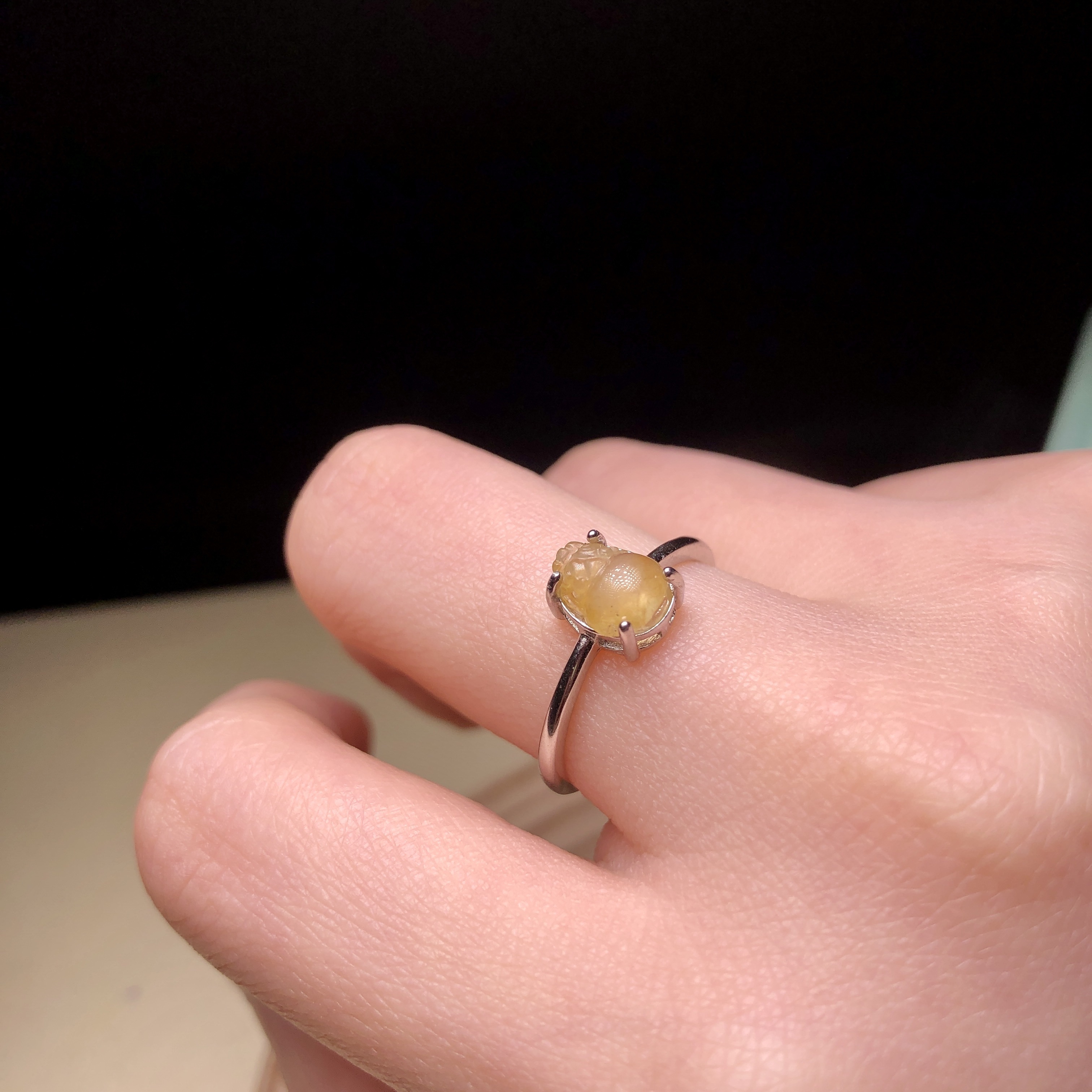 冰種黃翡銀鑲戒指 MD00049