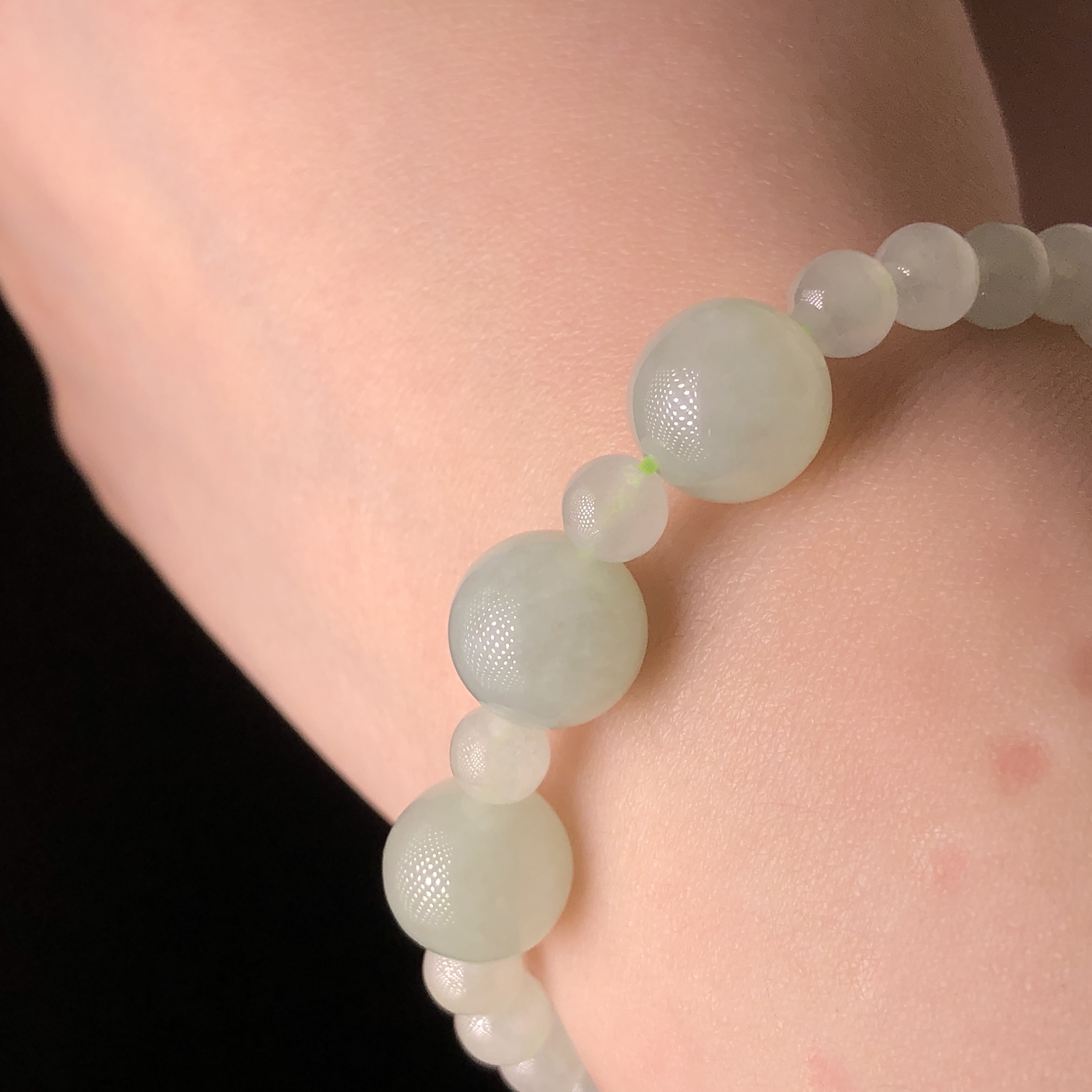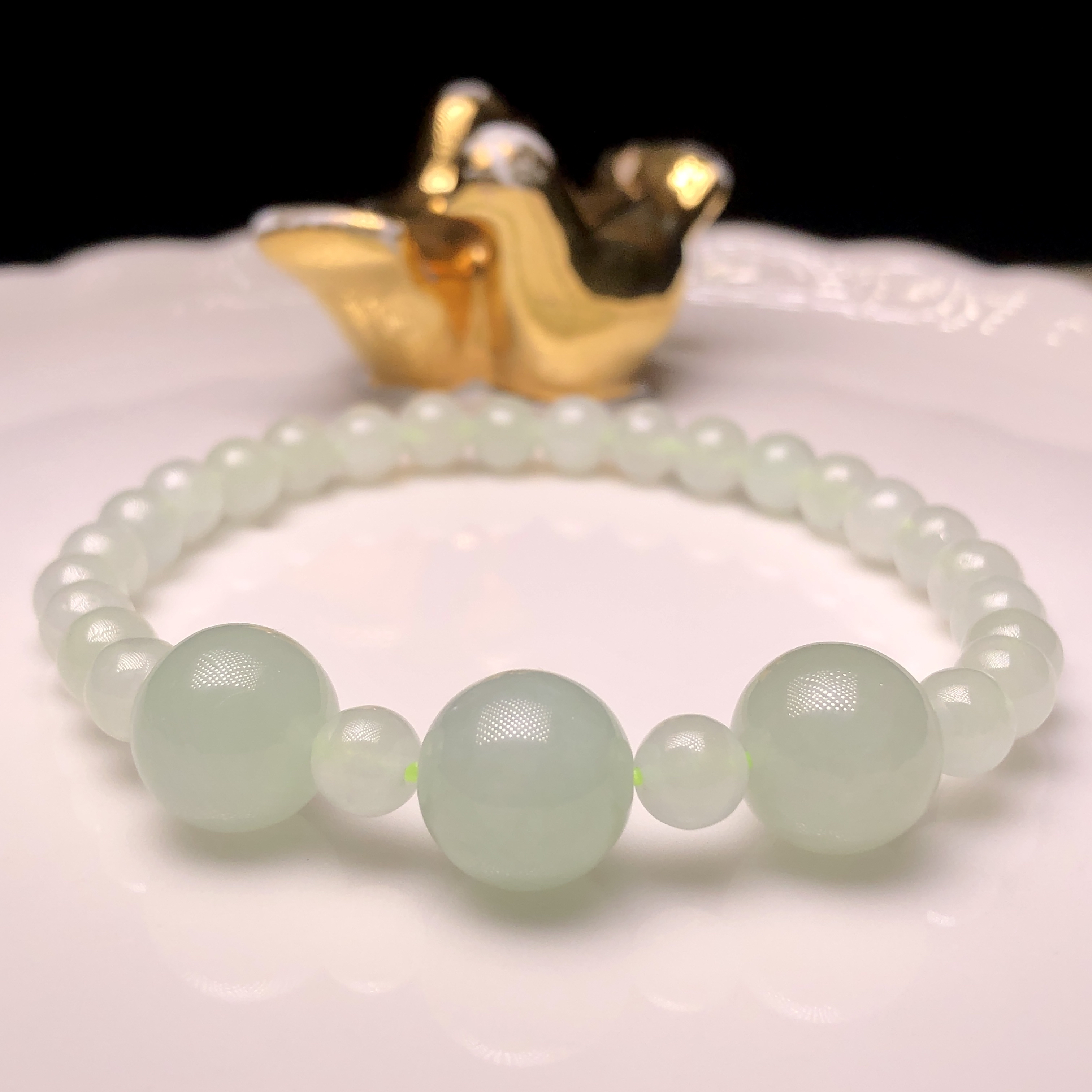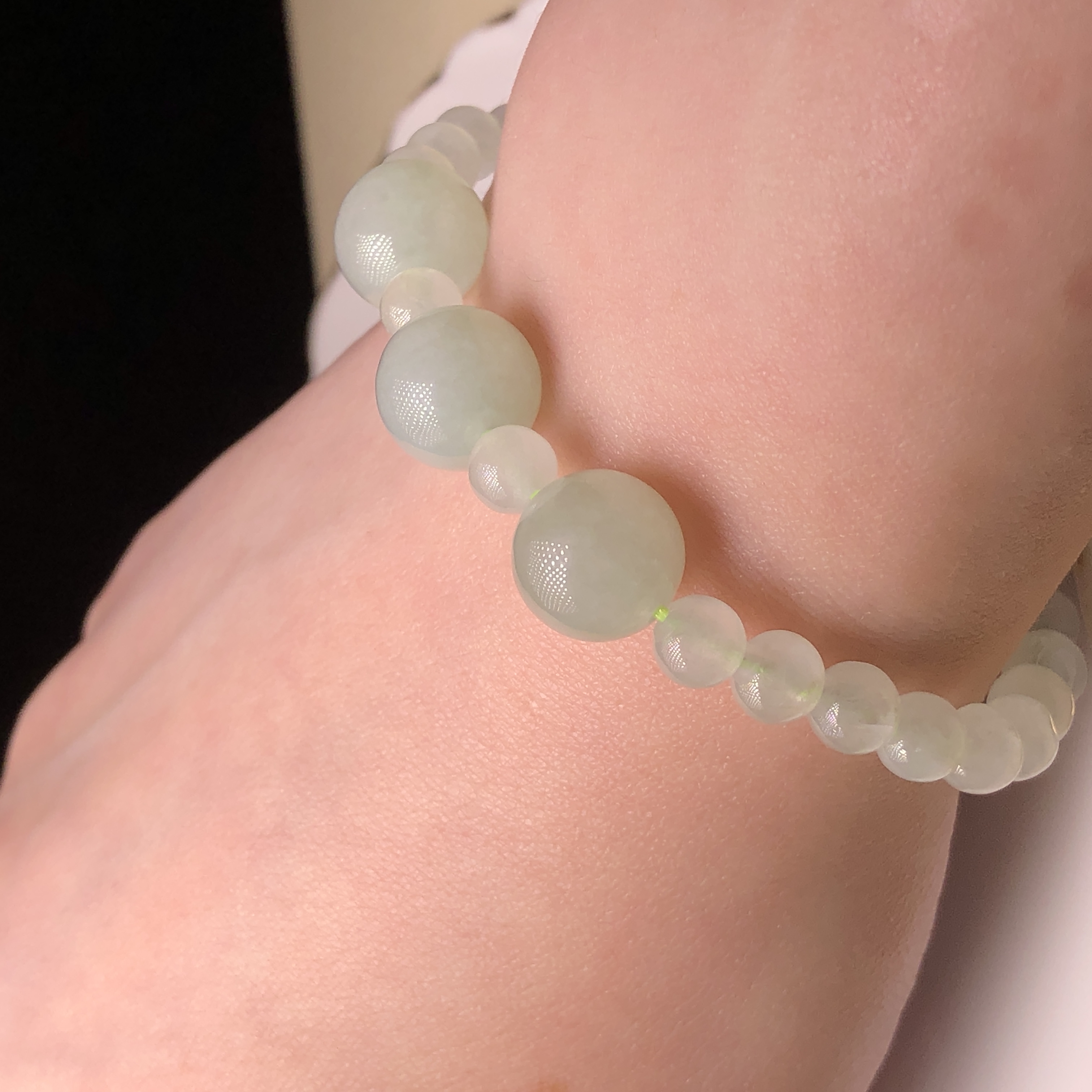 會卡蘋果甜綠配冰白翡翠手串 MC00225