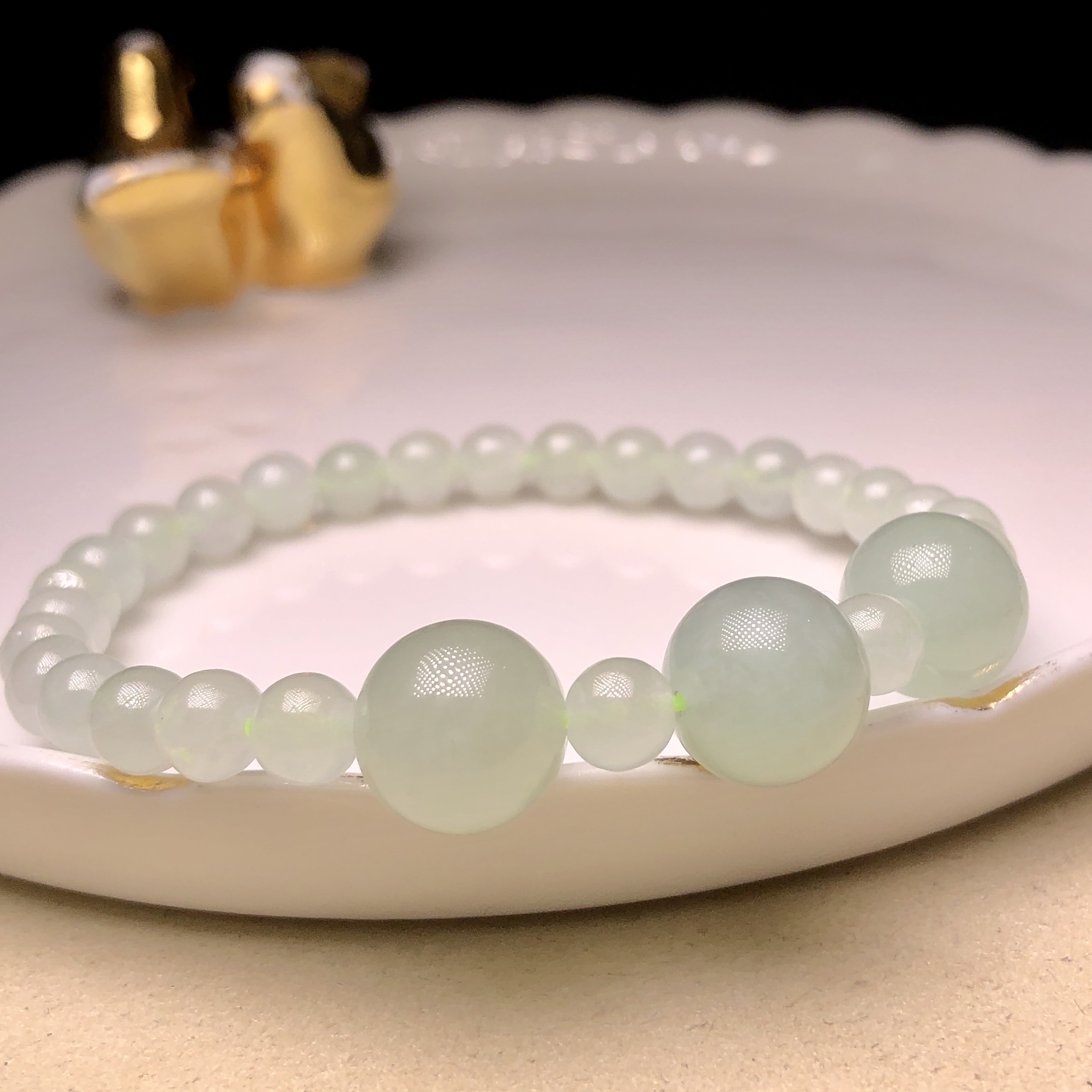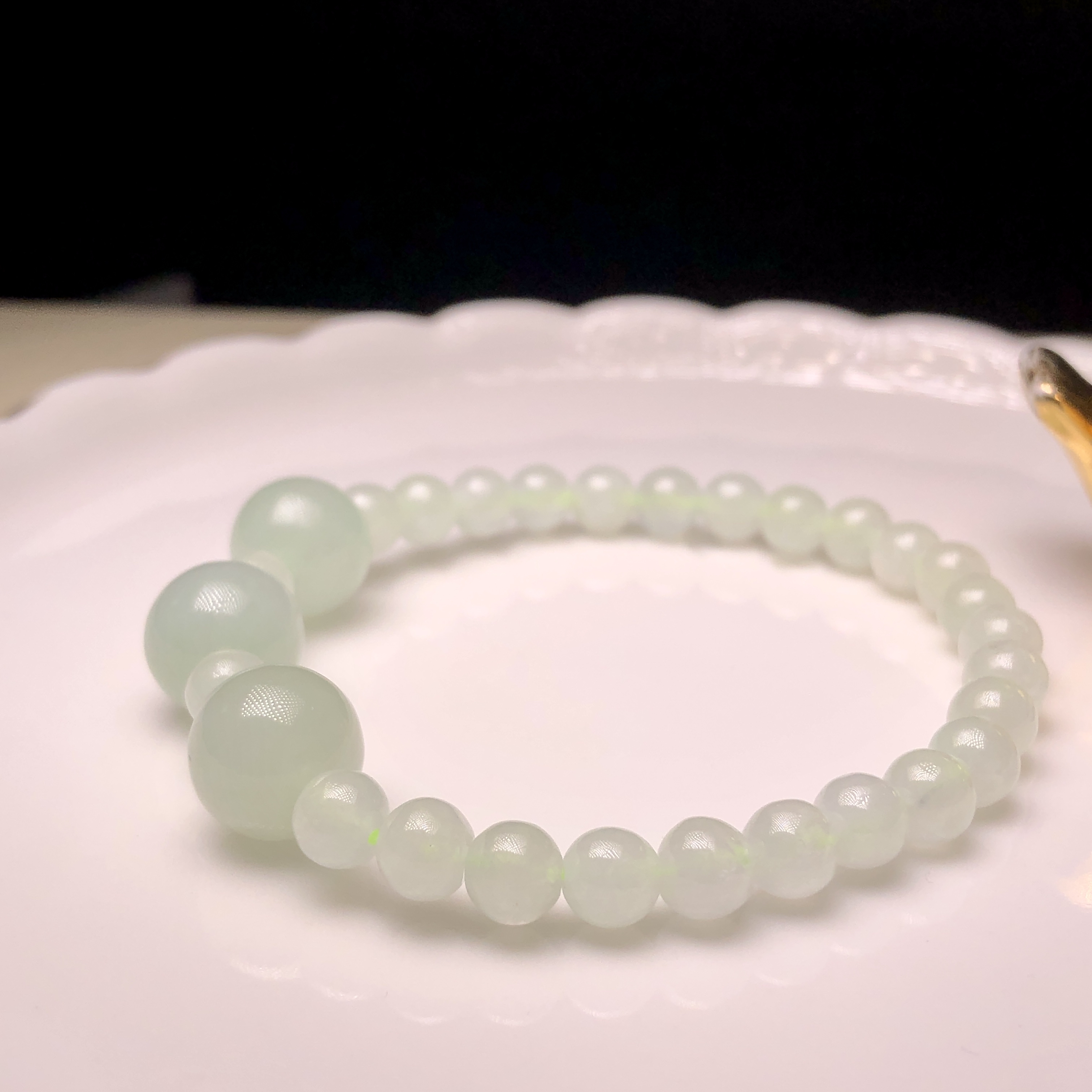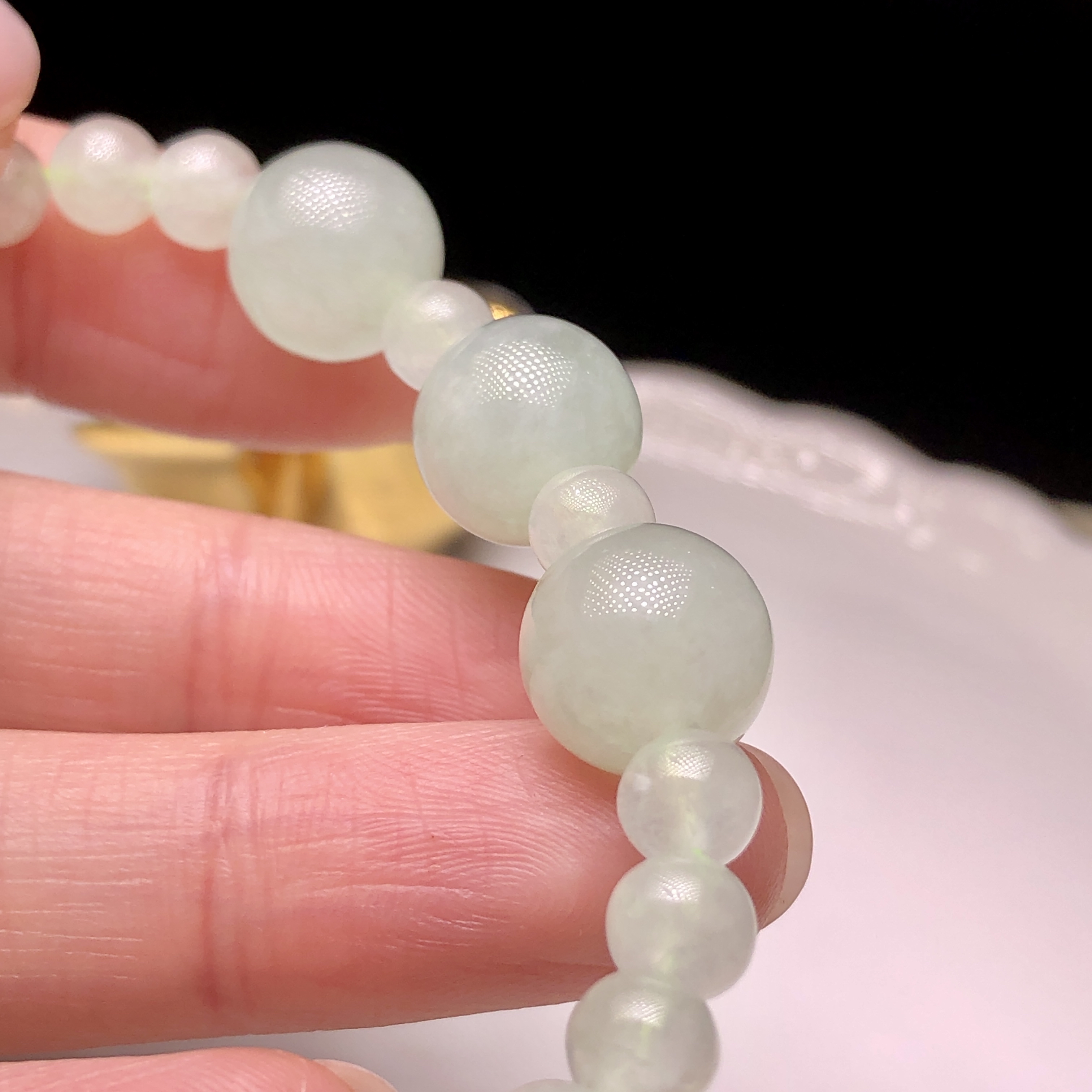 會卡蘋果甜綠配冰白翡翠手串 MC00225