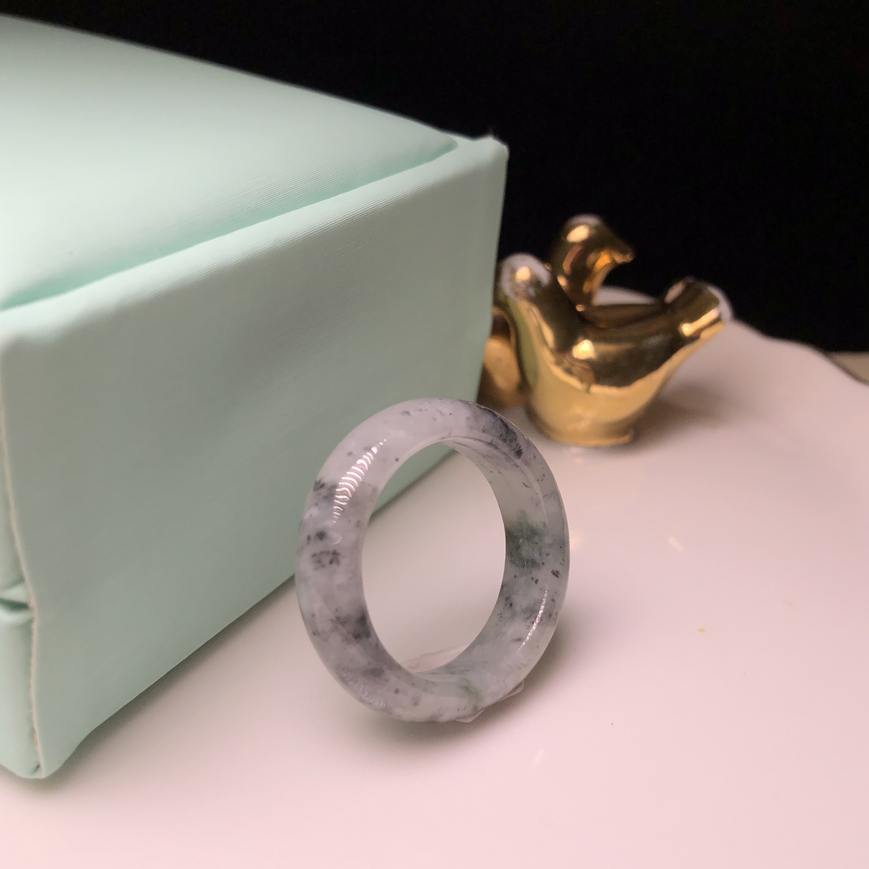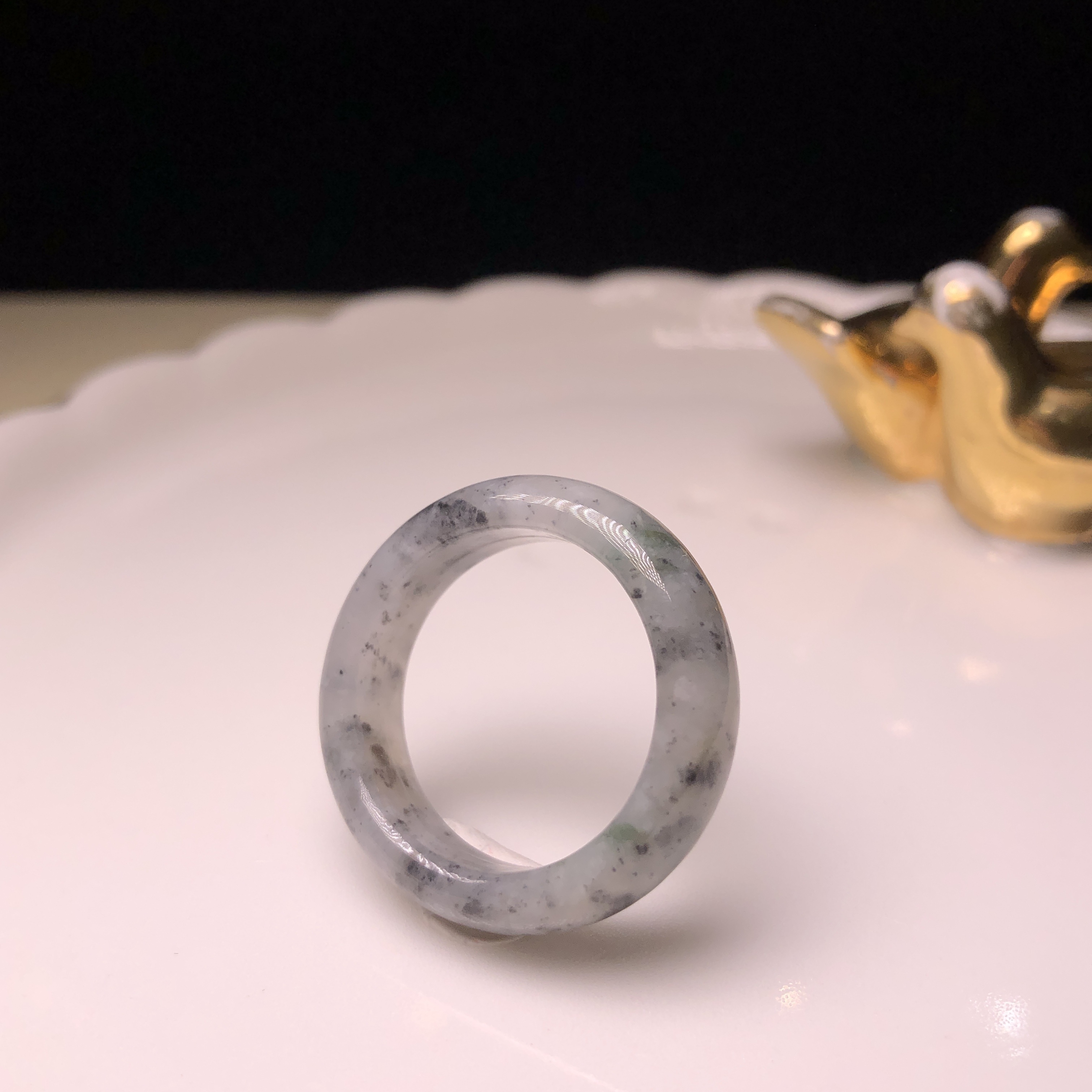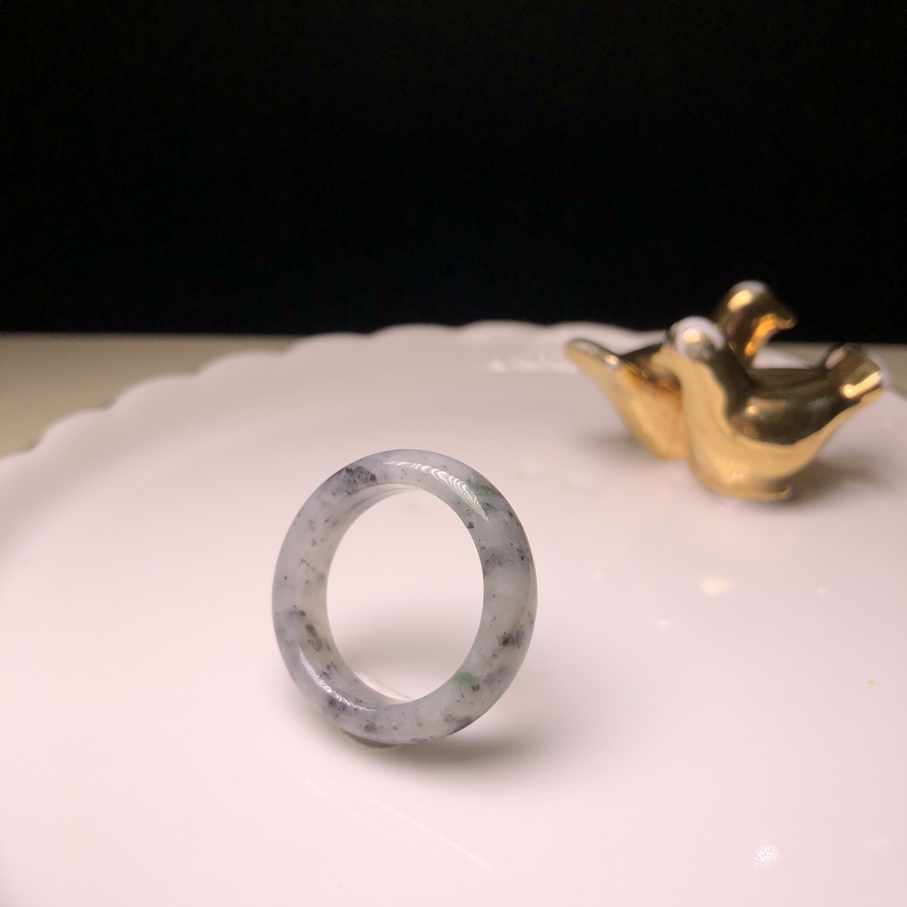 糯冰烏雞飄綠花戒指 (港圈21)MD00039