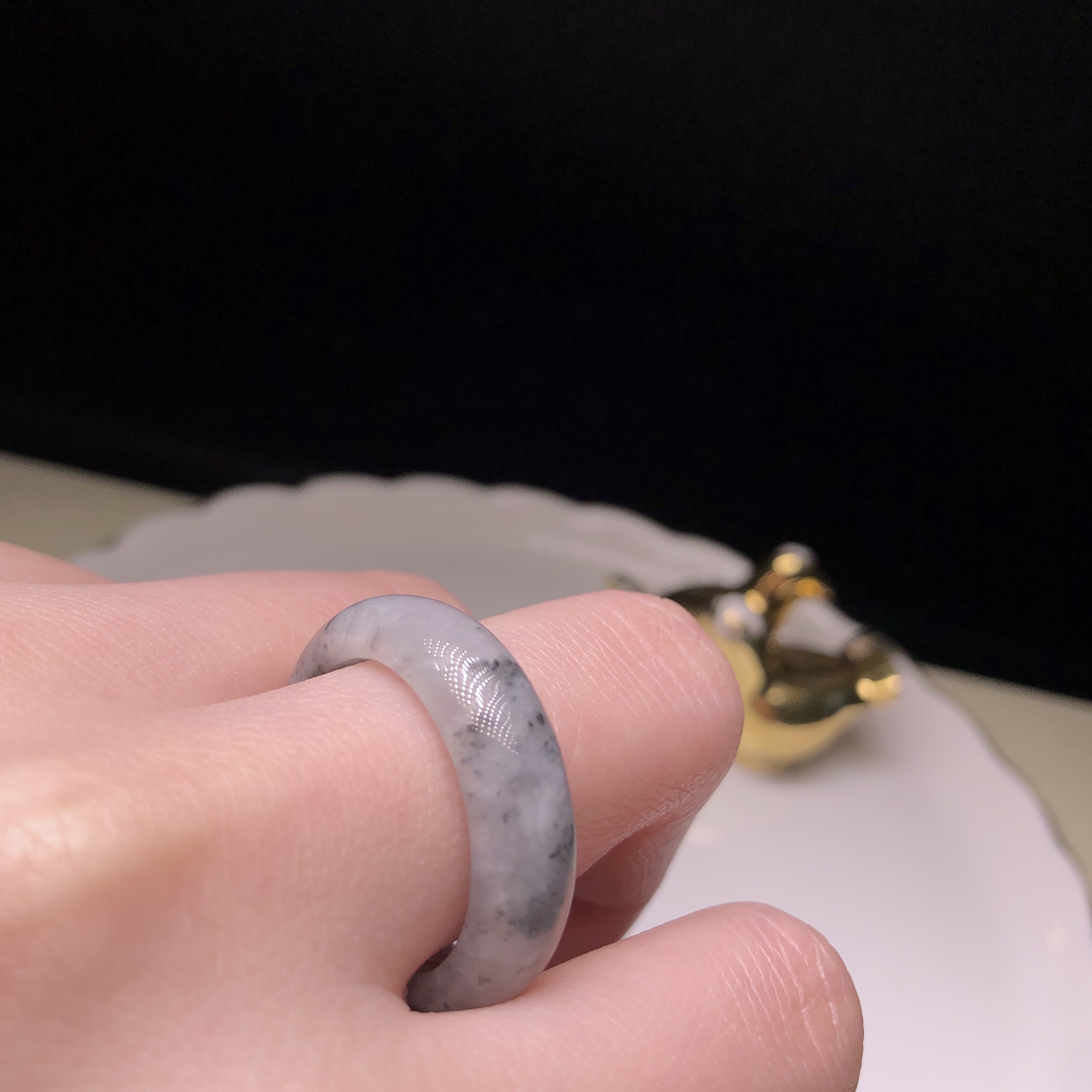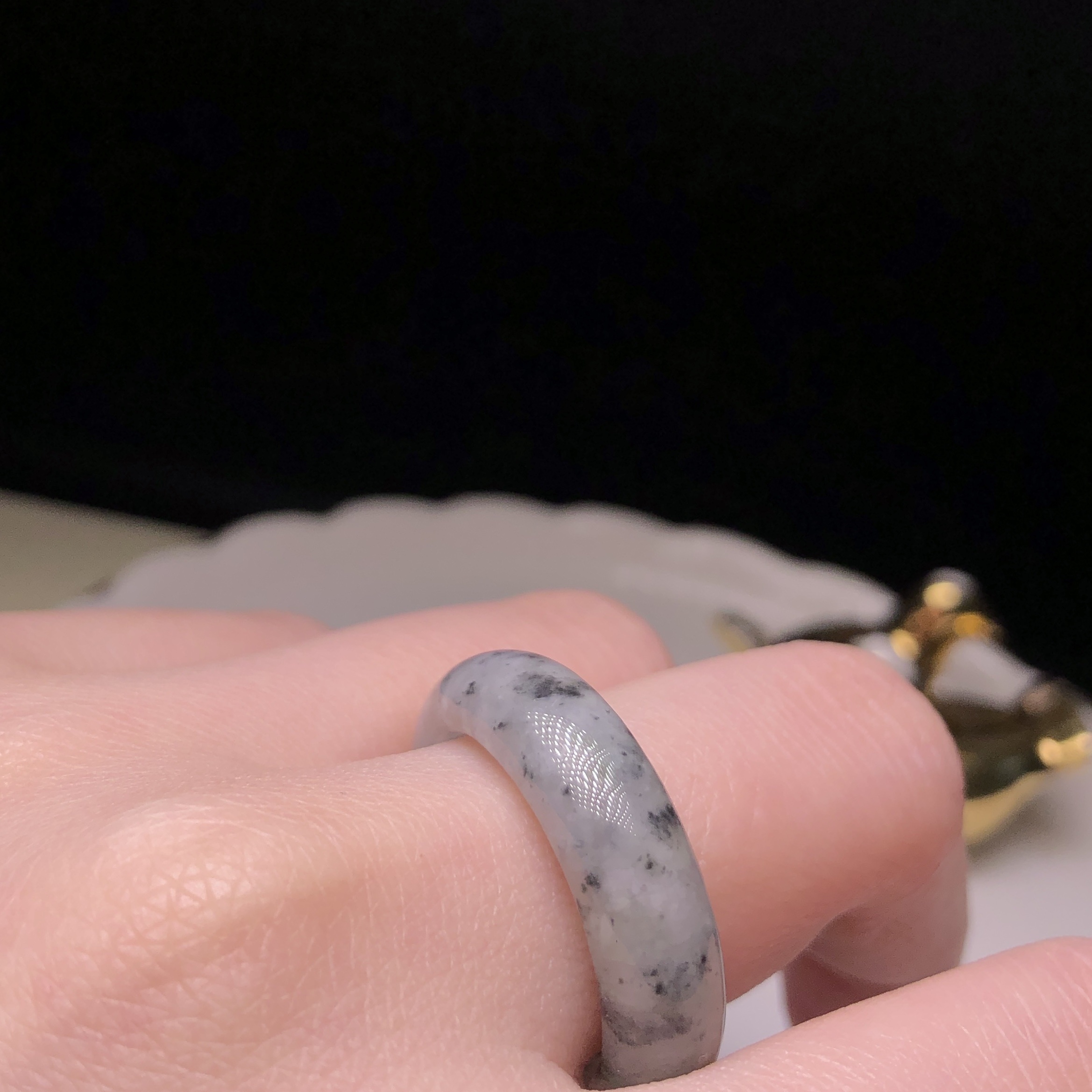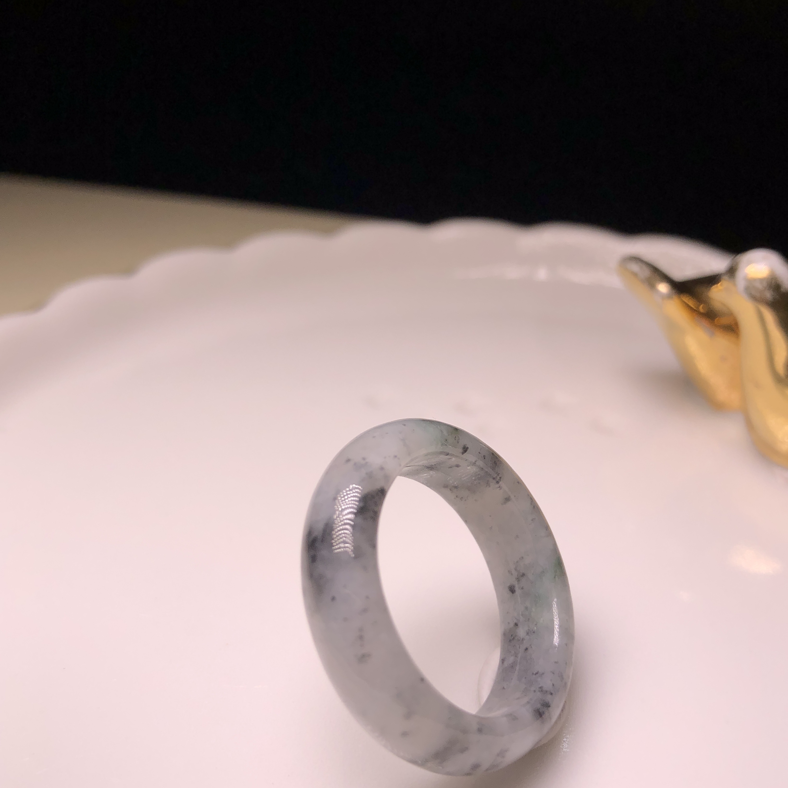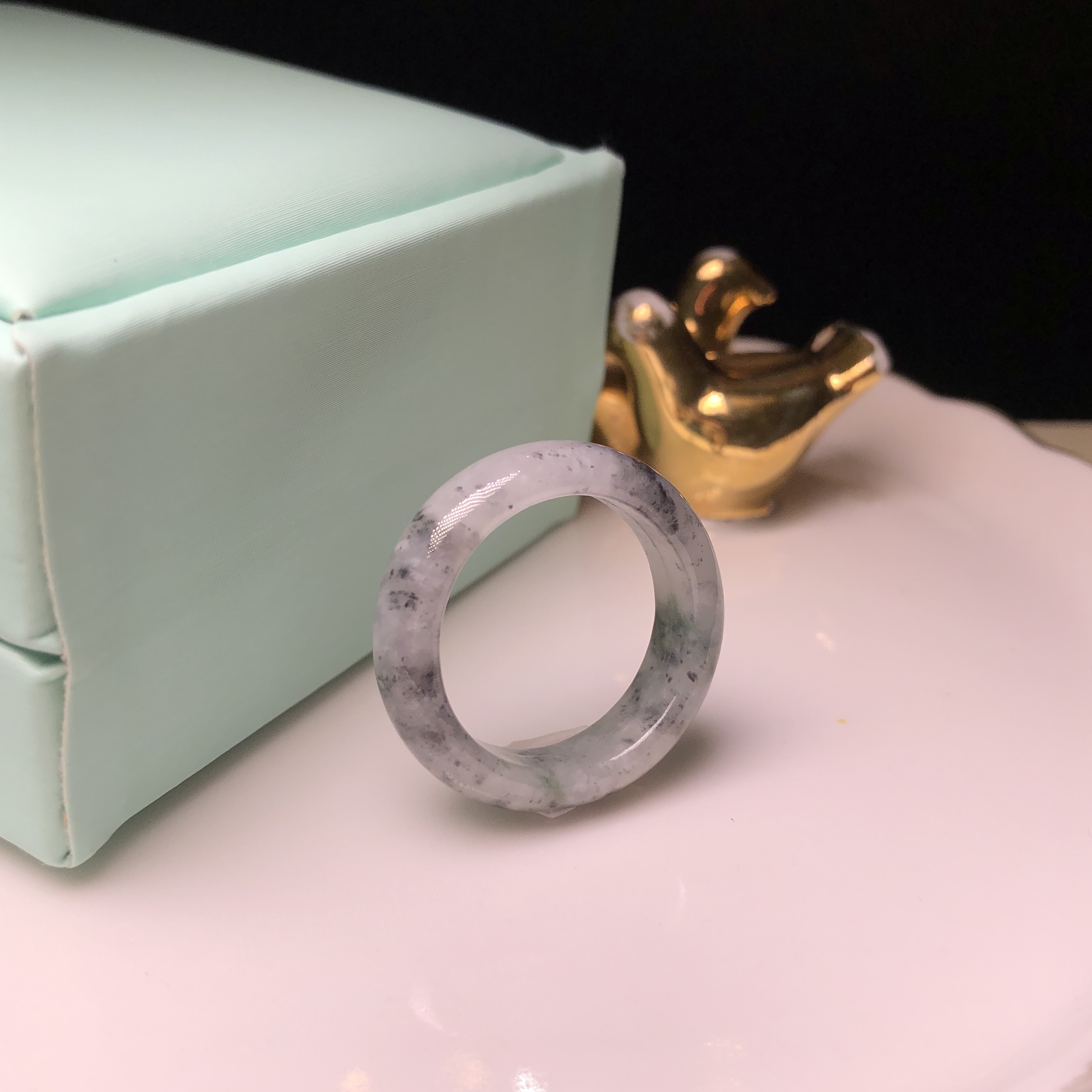 糯冰烏雞飄綠花戒指 (港圈21)MD00039