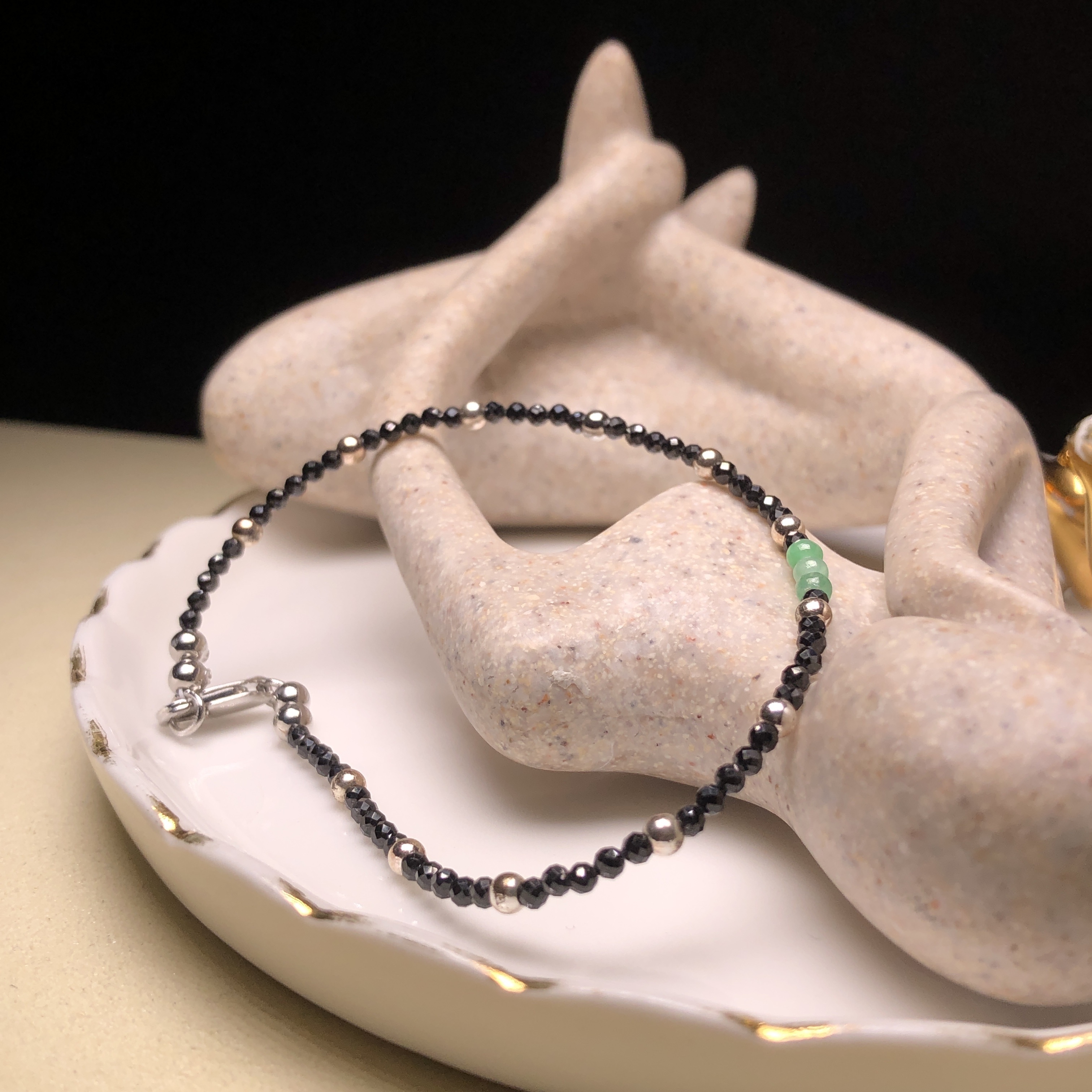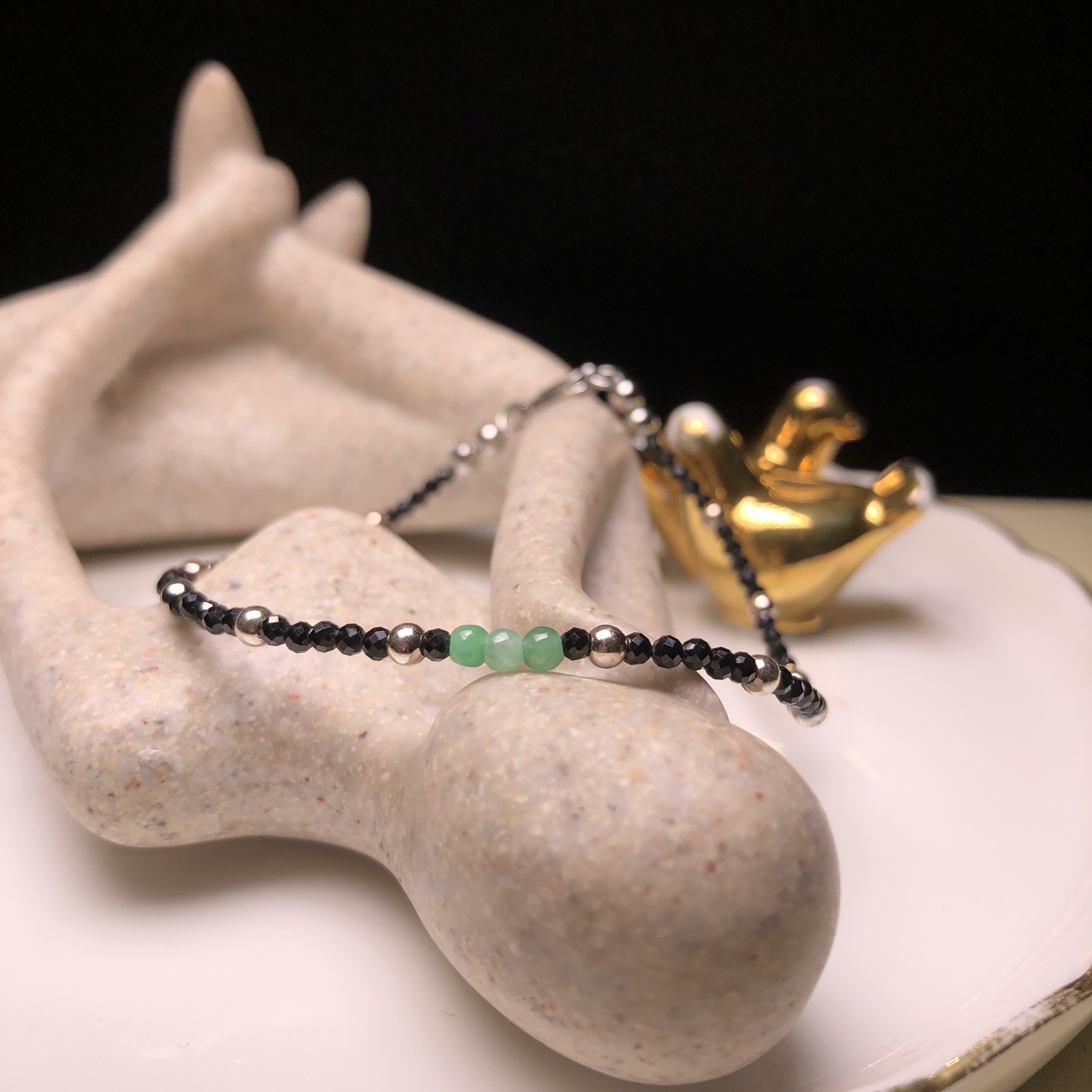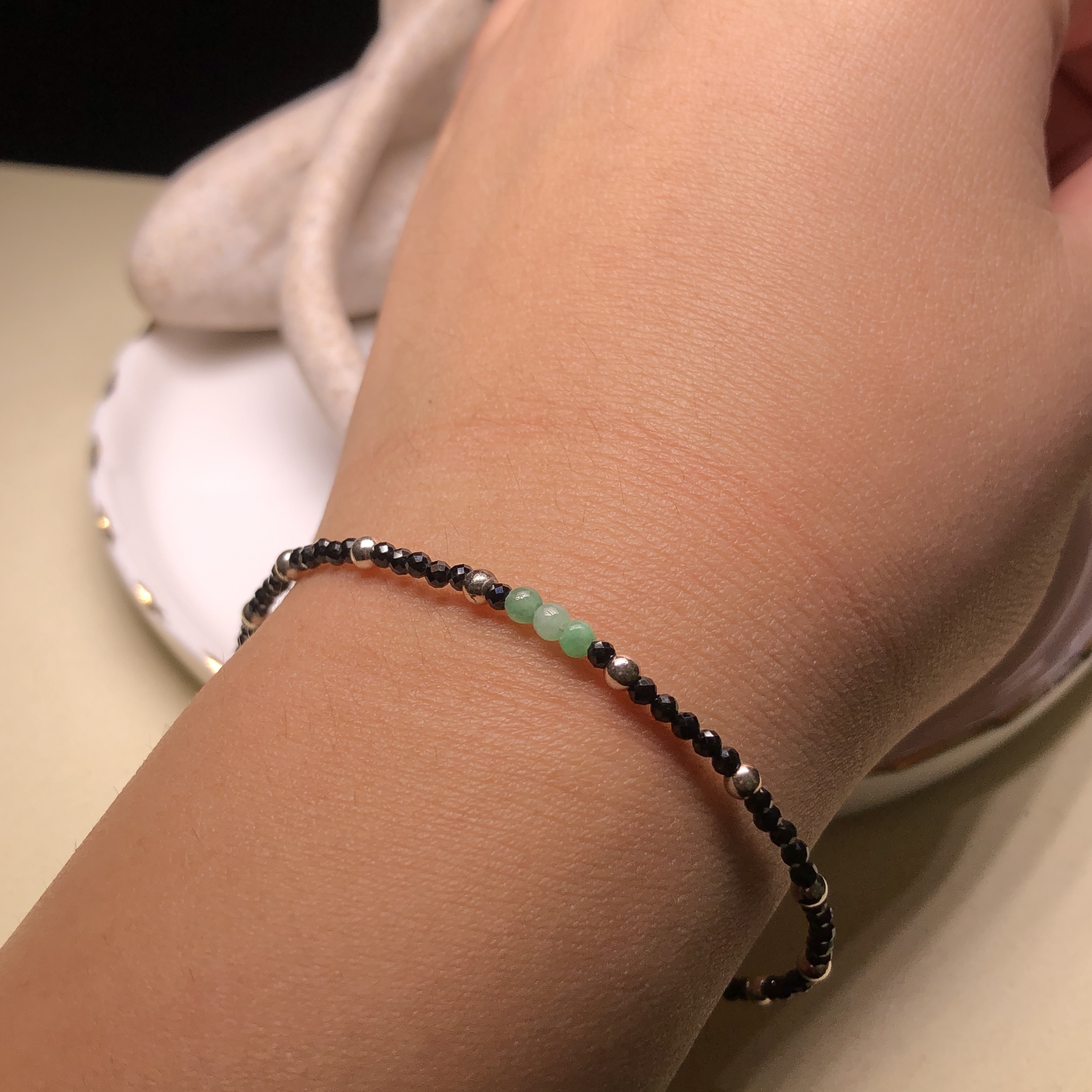 翠綠翡翠併尖石手鏈 MC00065