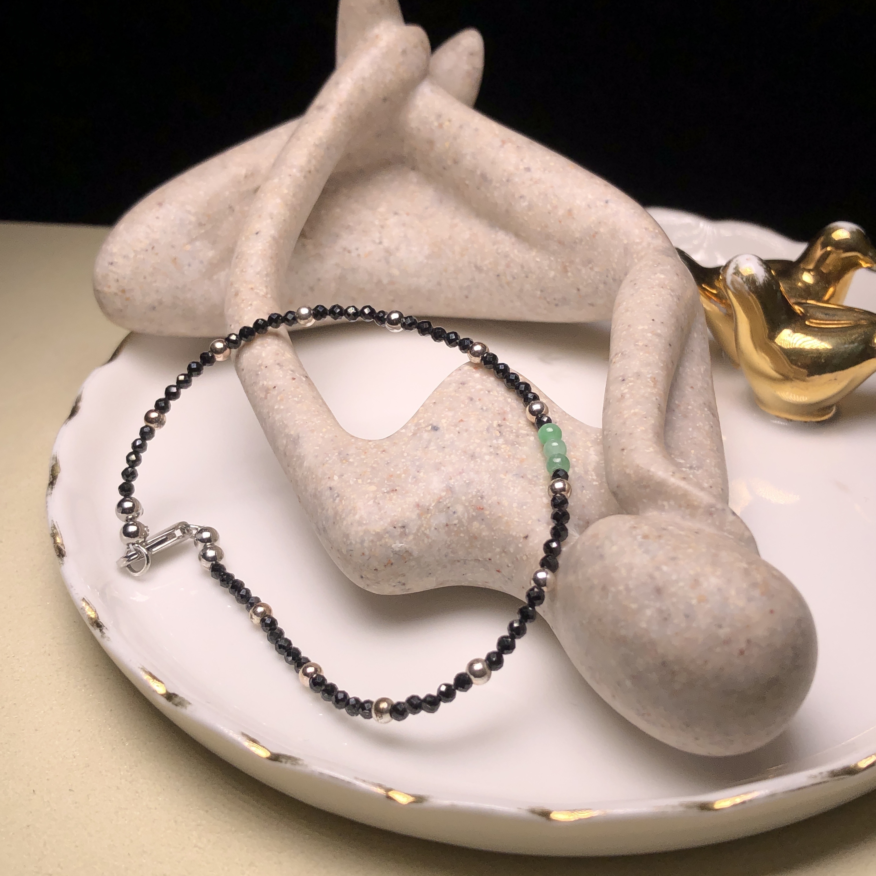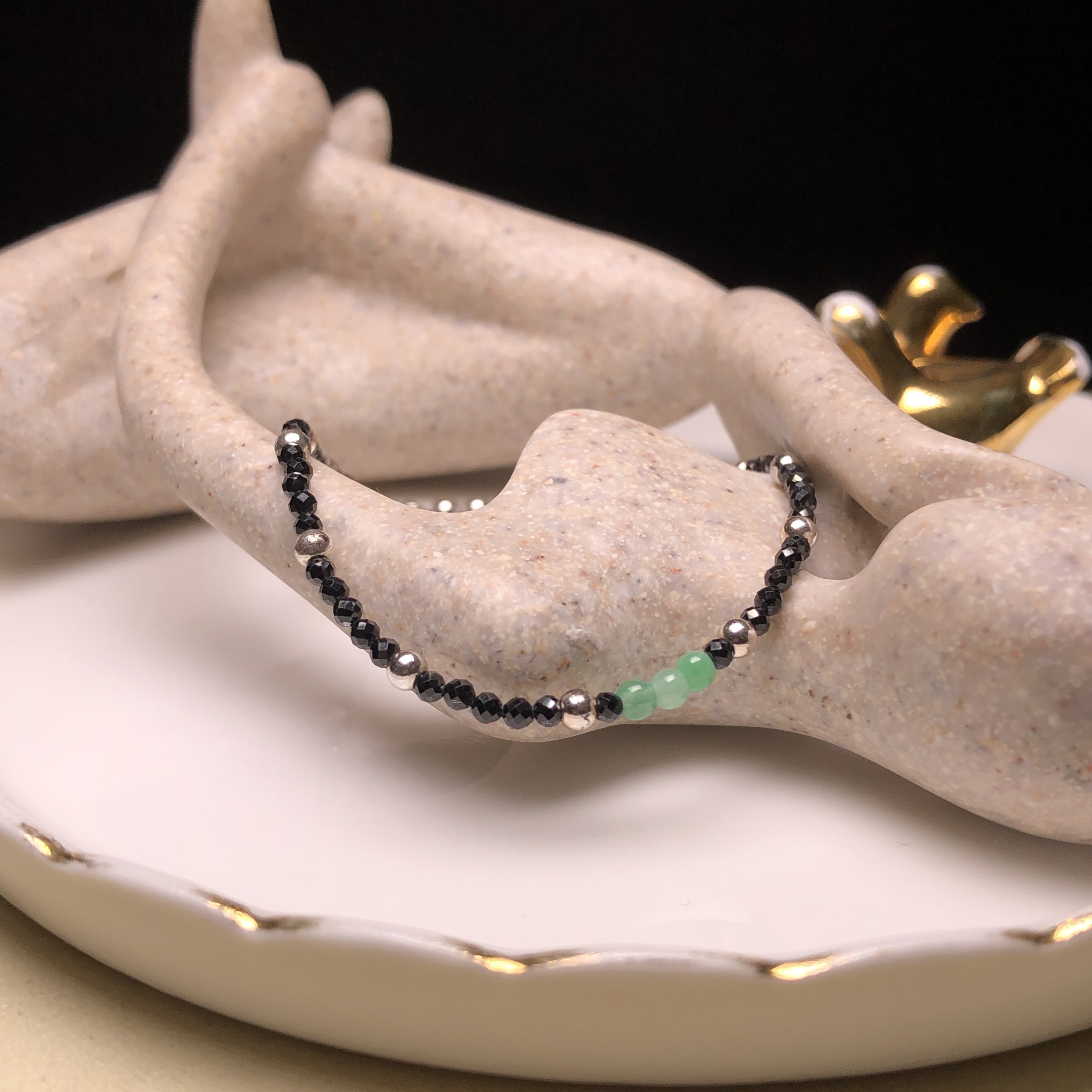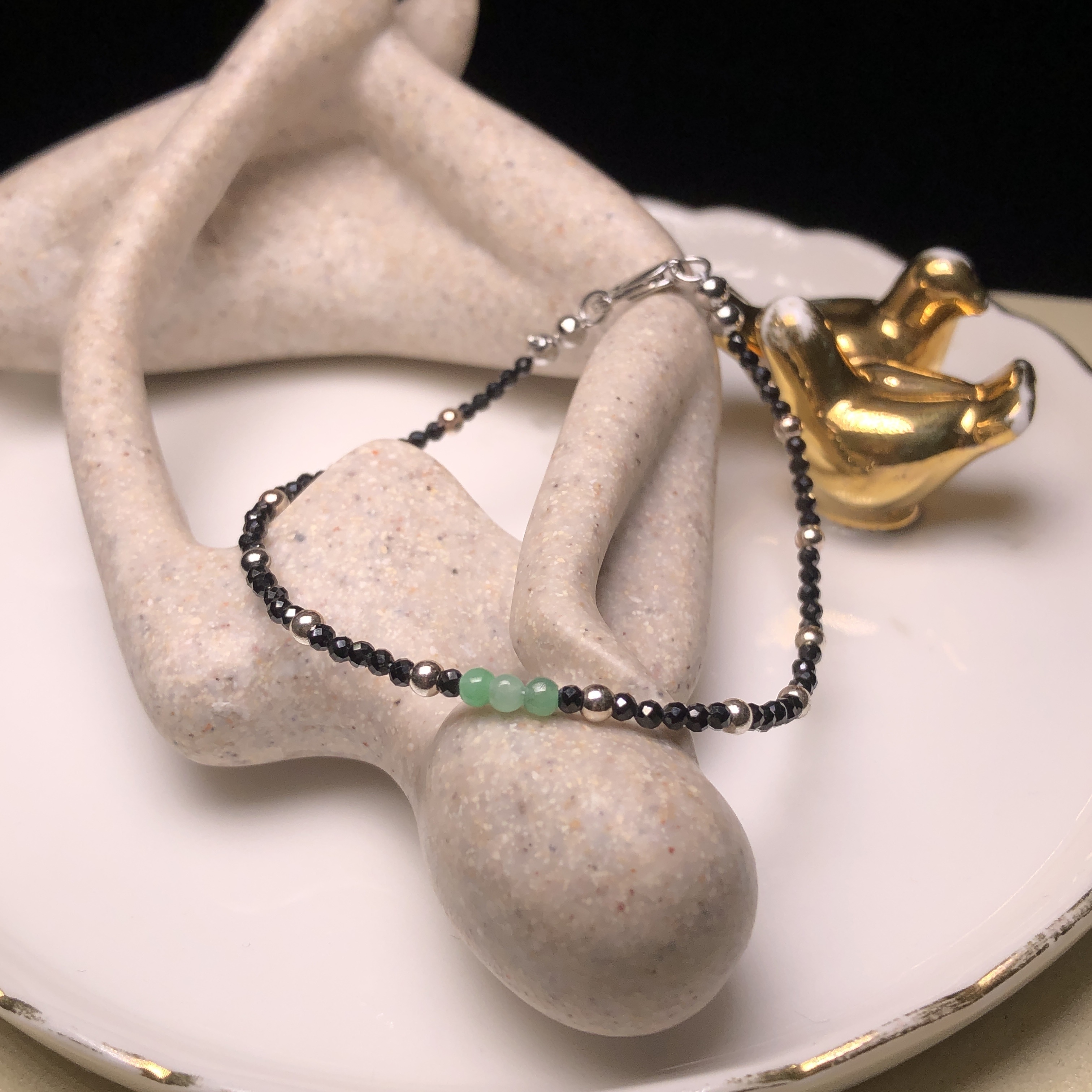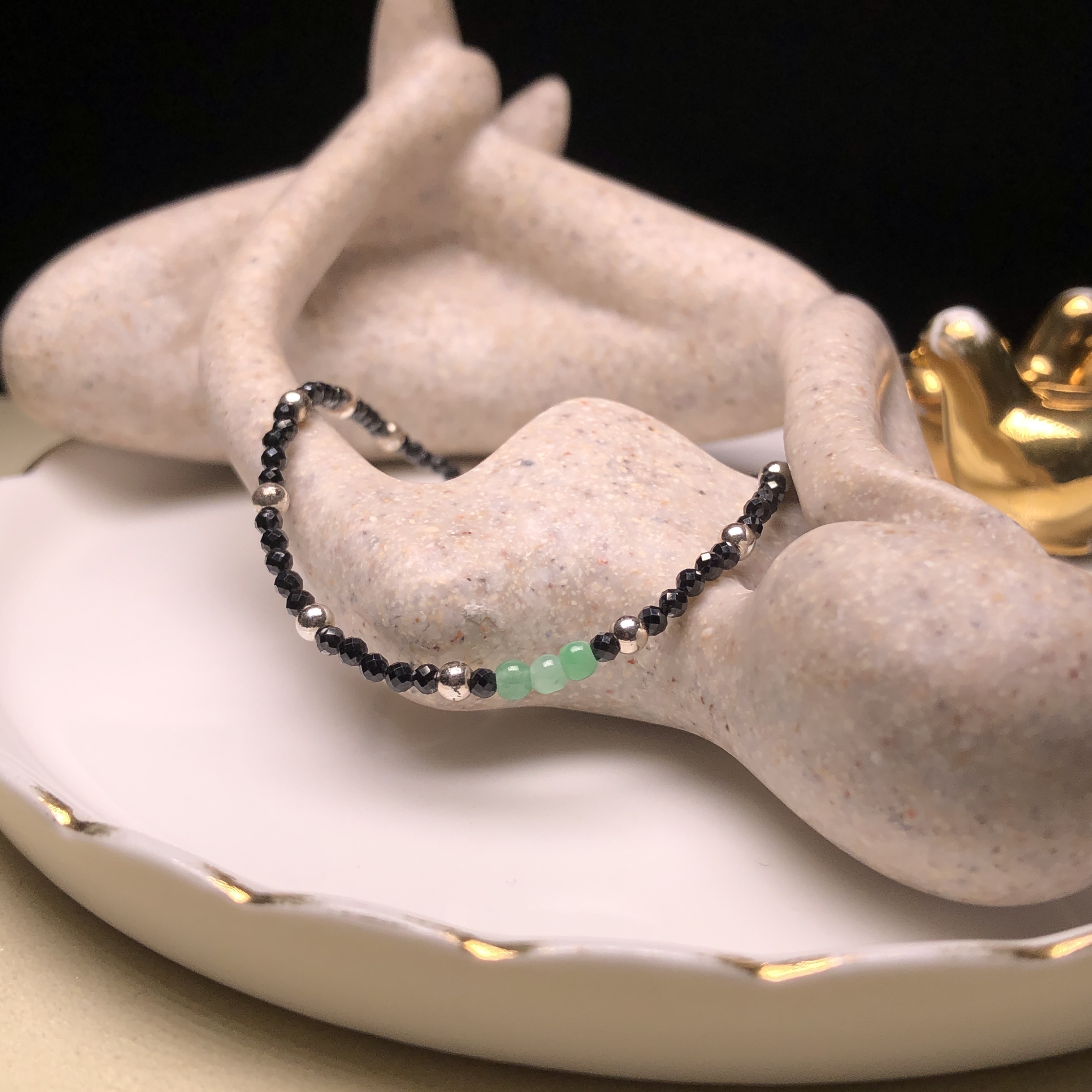 翠綠翡翠併尖石手鏈 MC00065
